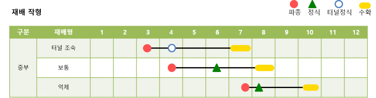 개화 후 45-50일 정도면 수확기에 도달합니다.