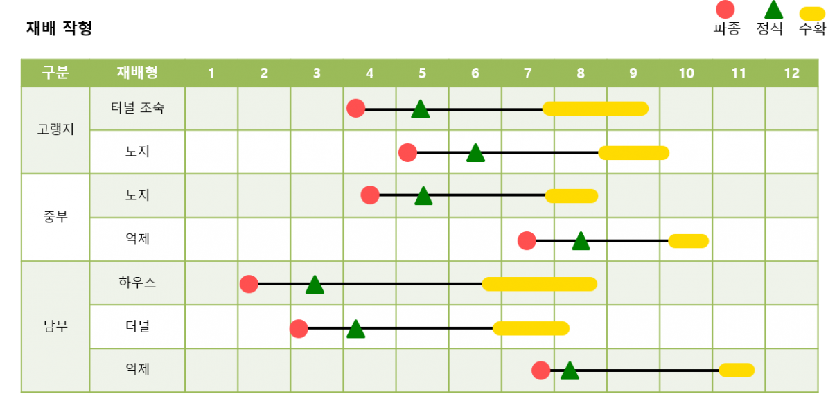 개화 후 30일 경에 수확기에 도달하지만, 완숙과로서 출하시키기 위해서는 40일 이후에 수확하여 주십시오.