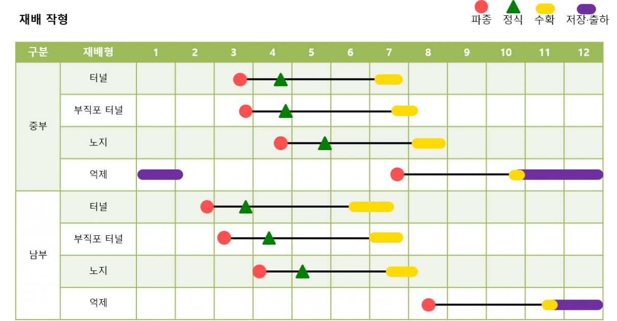 조생종으로 숙기가 빨라, 장마기 이전 수확 출하에 용이합니다.