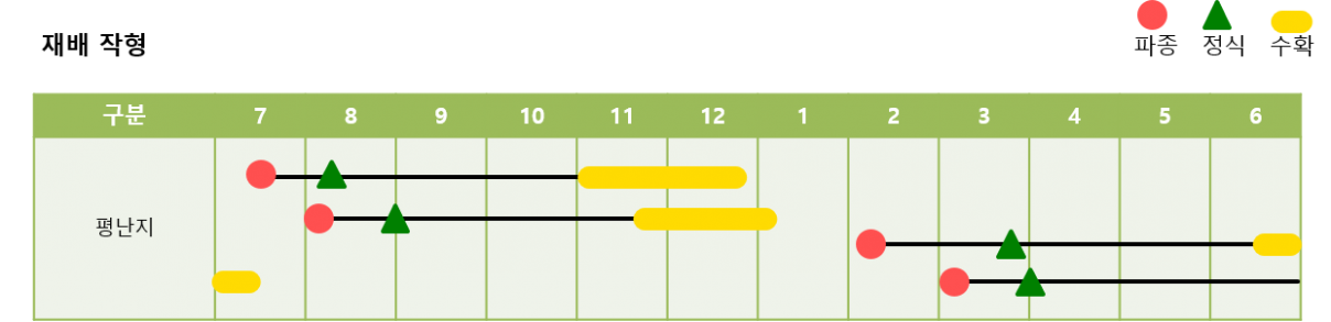 정식 후 약 65~70일경에 수확이 가능한 중조생종입니다.